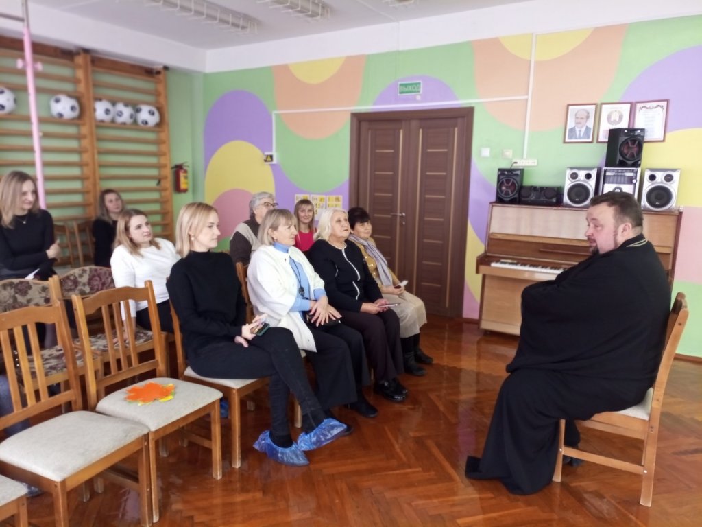 Священник поблагодарил воспитанников центра за прекрасное выступление и рассказал ребятам об истории возникновения праздника. В завершении утренника вручил всем родителям епархиальный журнал «Сретение».