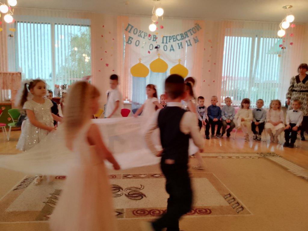 Дети читали стихи о празднике, участвовали в народных Покровских забавах и играх, водили хоровод с Осенью.