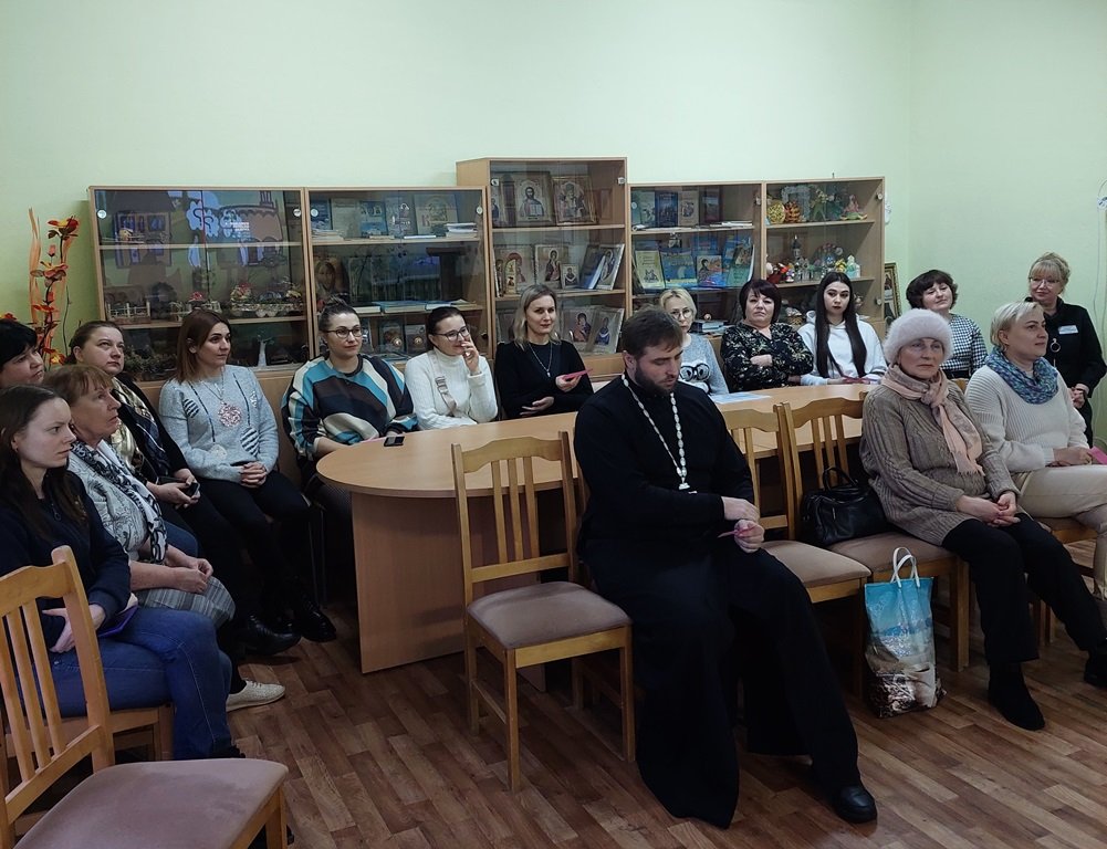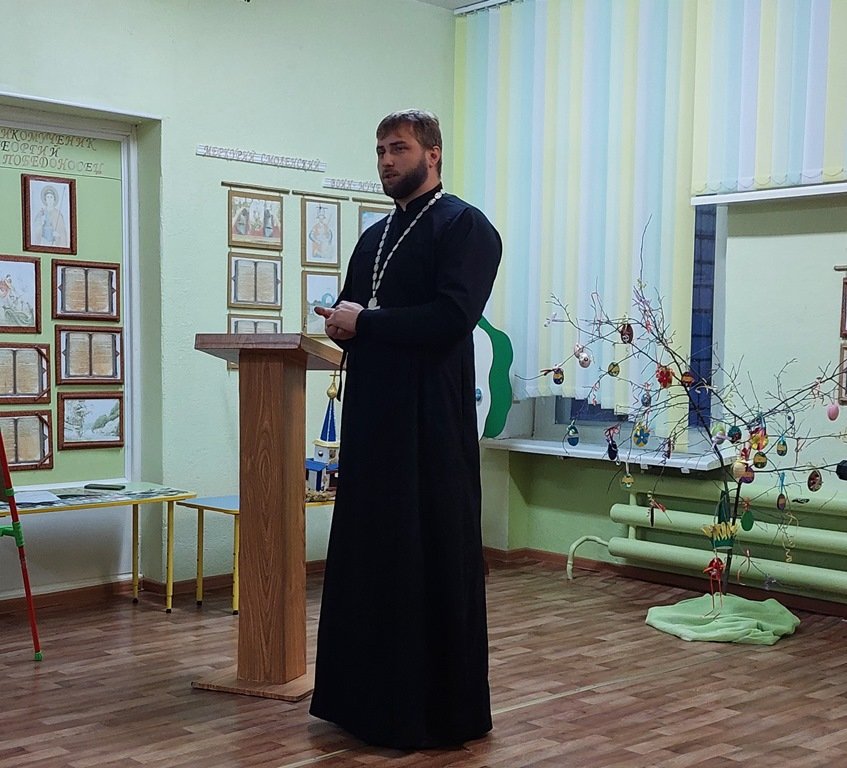 Гостем родительского собрания стал благочинный Рогачёвского округа иерей Алексей Сергеев.