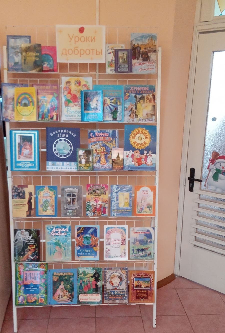 Выступление ребят сопровождалось выставкой книг и детских рисунков о рождении Иисуса Христа.