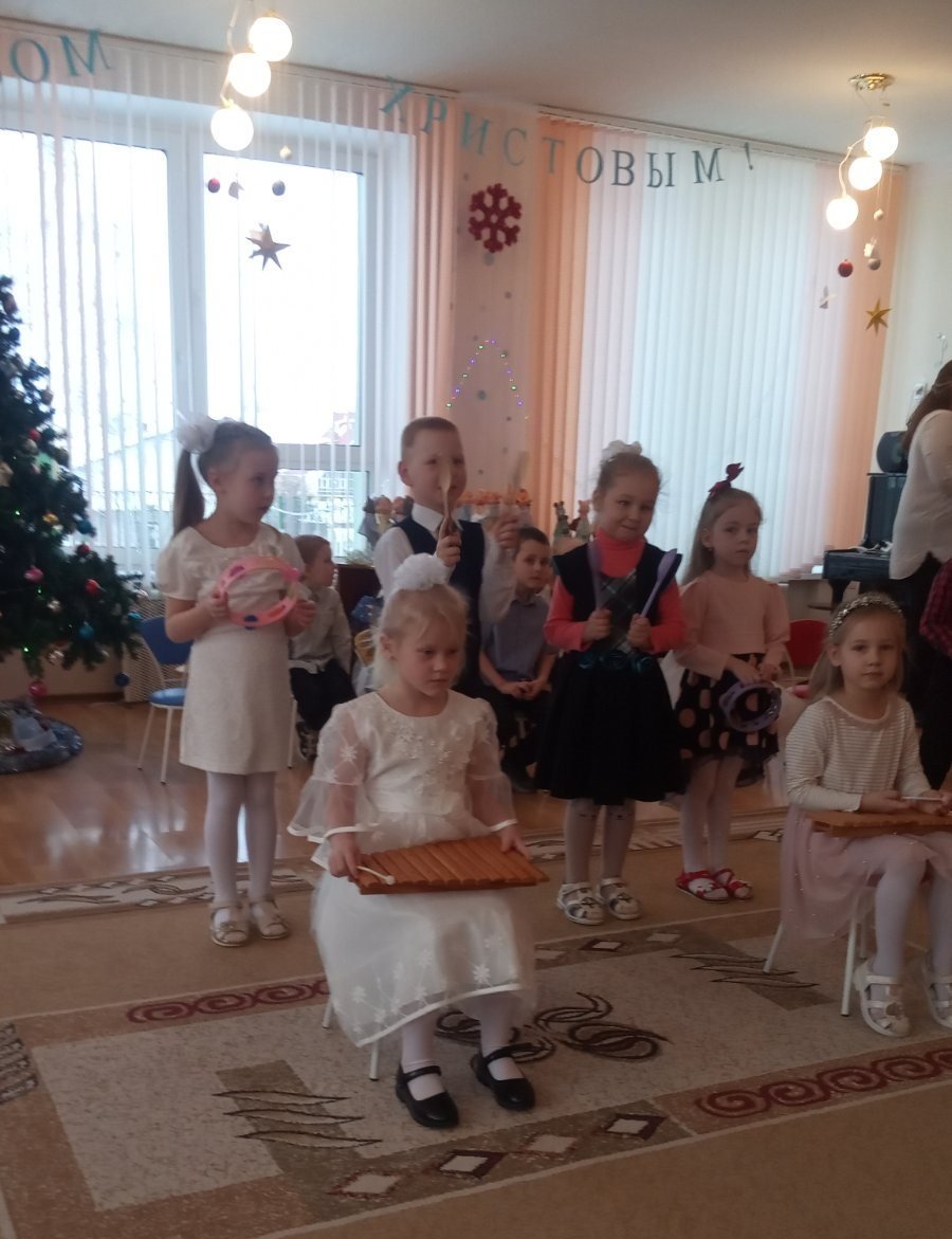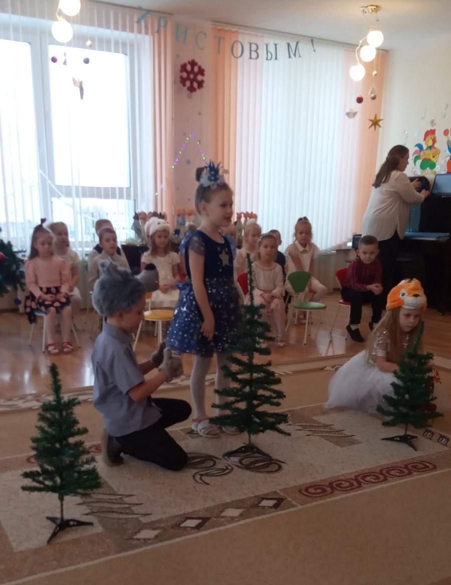 Дети с педагогами подготовили удивительное представление: славили Христа в песнях и стихах, танцевали вместе со снеговиком, участвовали в играх, благодарили ангела, который украсил для всех ёлочку.