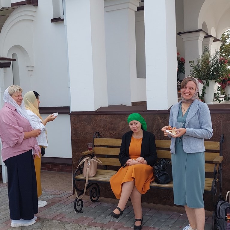 А во дворе храма гостей и прихожан домашней выпечкой угощало сестричество в честь святой преподобной Евфросинии Полоцкой.