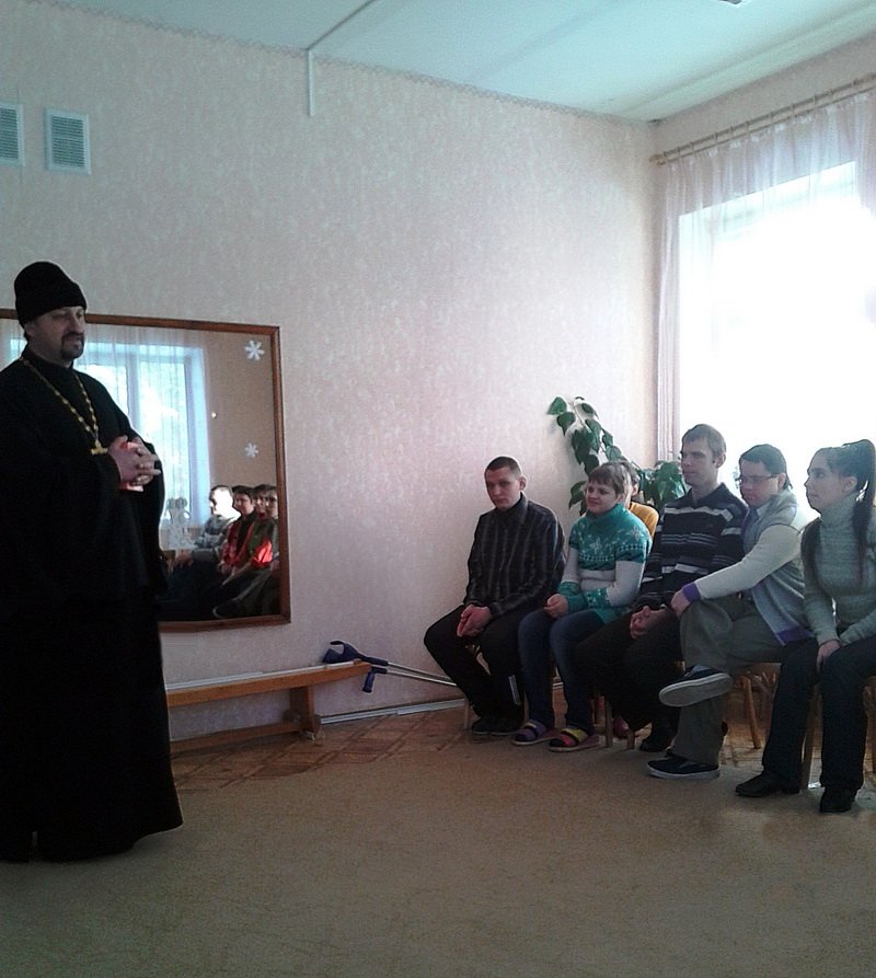 Клирик храма святого благоверного князя Александра Невского протоиерей Александр Атрощенко побывал в гостях у молодежи с ограниченными способностями. Встреча прошла в отделении дневного пребывания. Состоялась душевная беседа. Священник рассказал о жизни прихода, прошедших праздниках, а ребята поведали о своей жизни, рассказали и показали чем они занимаются. Продемонстрировали удивительные поделки сделанные своими руками. Следующая встреча была назначена в феврале и провести ее договорились уже в храме.