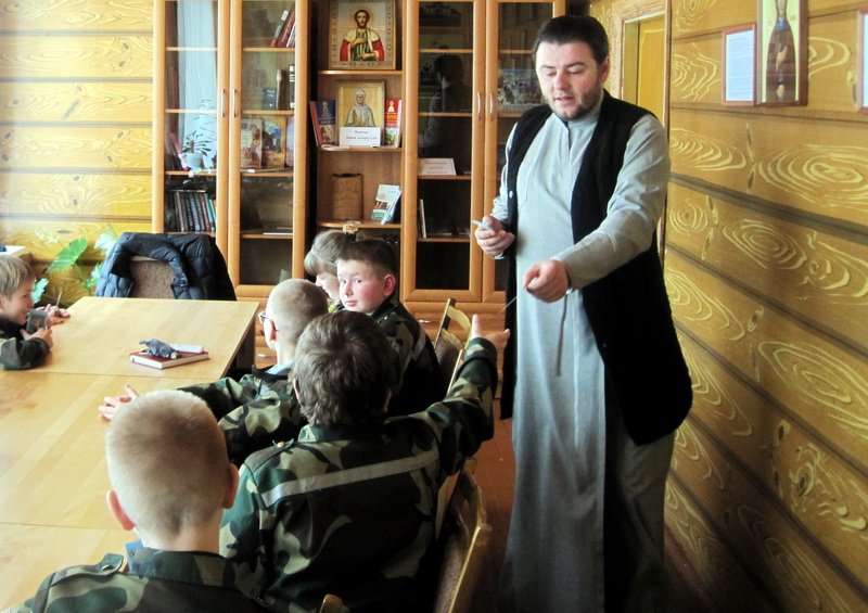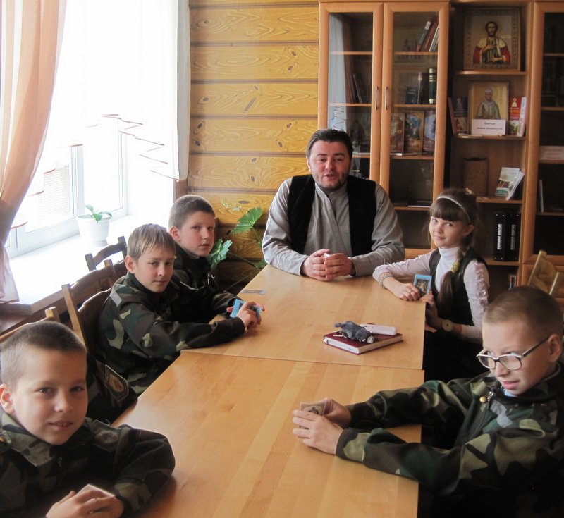 В школе №4 г. Рогачева 18 января накануне праздника Богоявления прошла встреча учеников кадетского класса с клириком прихода храма святого благоверного князя Александра Невского диаконом Игорем Ковальчуком. Беседа проходила в кабинете духовного воспитания на основах православных традиций белорусского народа. Отец Игорь рассказал ребятам о Рождестве Христовом, святках и празднике Богоявления. Объяснил церковные и народные традиции касающихся этих святых дней. Пригласил ребят вместе помолиться 19 января на праздничном богослужении и кто смелый с родителями искупаться в зимней крещенской проруби. Встреча завершилась раздачей небольших иконок праздника Богоявления.
