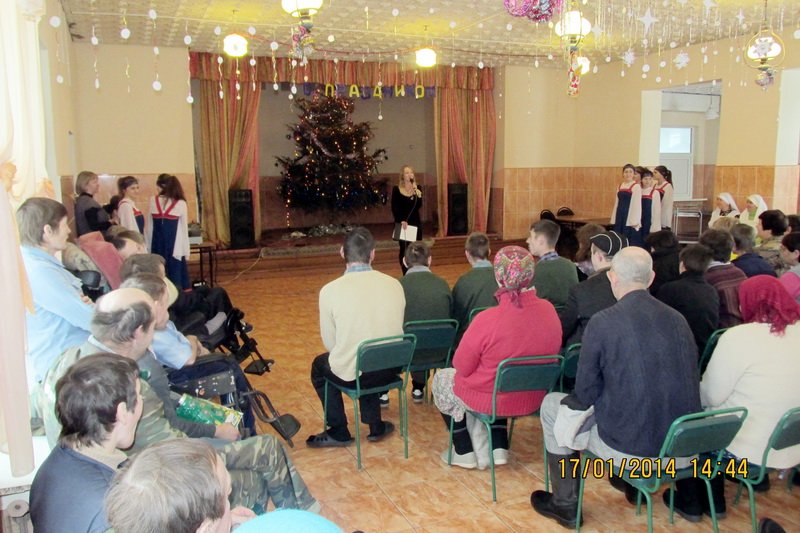 Ученики Рогачевской школы №5 вместе с сестрами милосердия при приходе храма святого благоверного князя Александра Невского в дни рождественских святок провели концерт в психо-неврологическом интернате для взрослых д. Виков. Эти встречи стали доброй традицией. Насельники интерната с большой радостью встречают детей. Такие события остаются надолго в памяти и у взрослых и у детей.