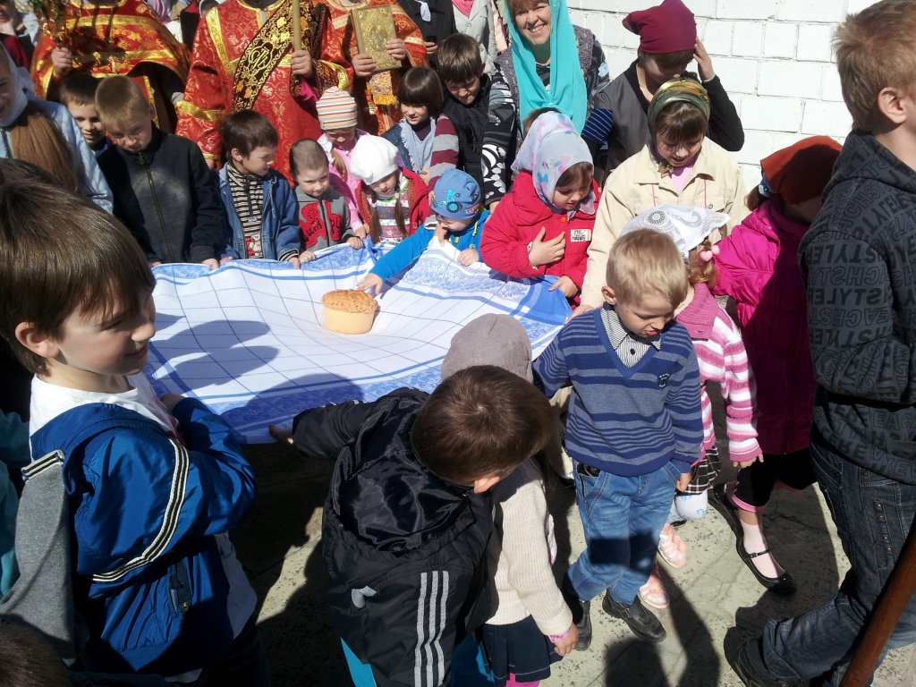 В храме святого благоверного князя Александра Невского по сложившейся традиции на второй день Пасхи для детей прихода было организовано богослужение и Крестный ход. Дети с радостью присоединились к прославлению Воскресшего Христа. Все они приняли Причастие и после этого неся Артос (Пасхальный хлеб) прошли Крестным ходом вокруг храма.