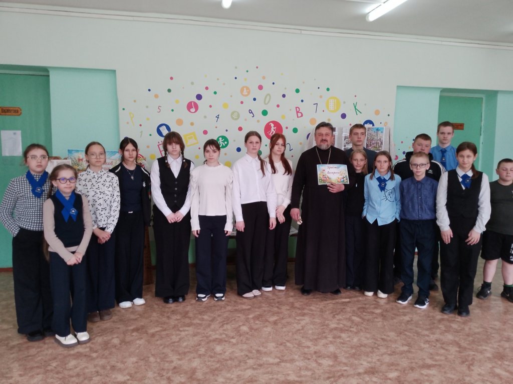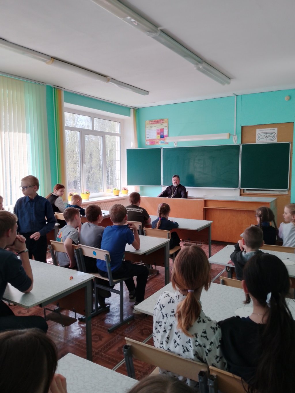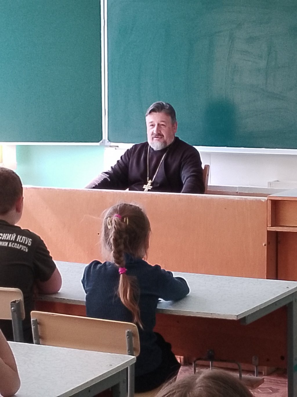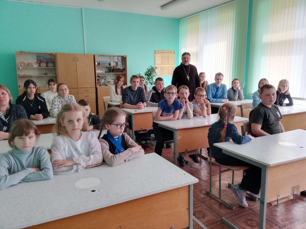 В стенах Великокрушиновской базовой школы прошла пасхальная встреча протоиерея Николая Степанова, настоятеля прихода храма святого Архангела Михаила в аг. Тихиничи, с учащимися школы.