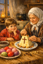 – Коля, не вертись под рукой, иди в детскую… Увидишь завтра и пасху, и куличи! – уговаривает меня бабушка.