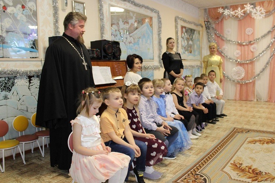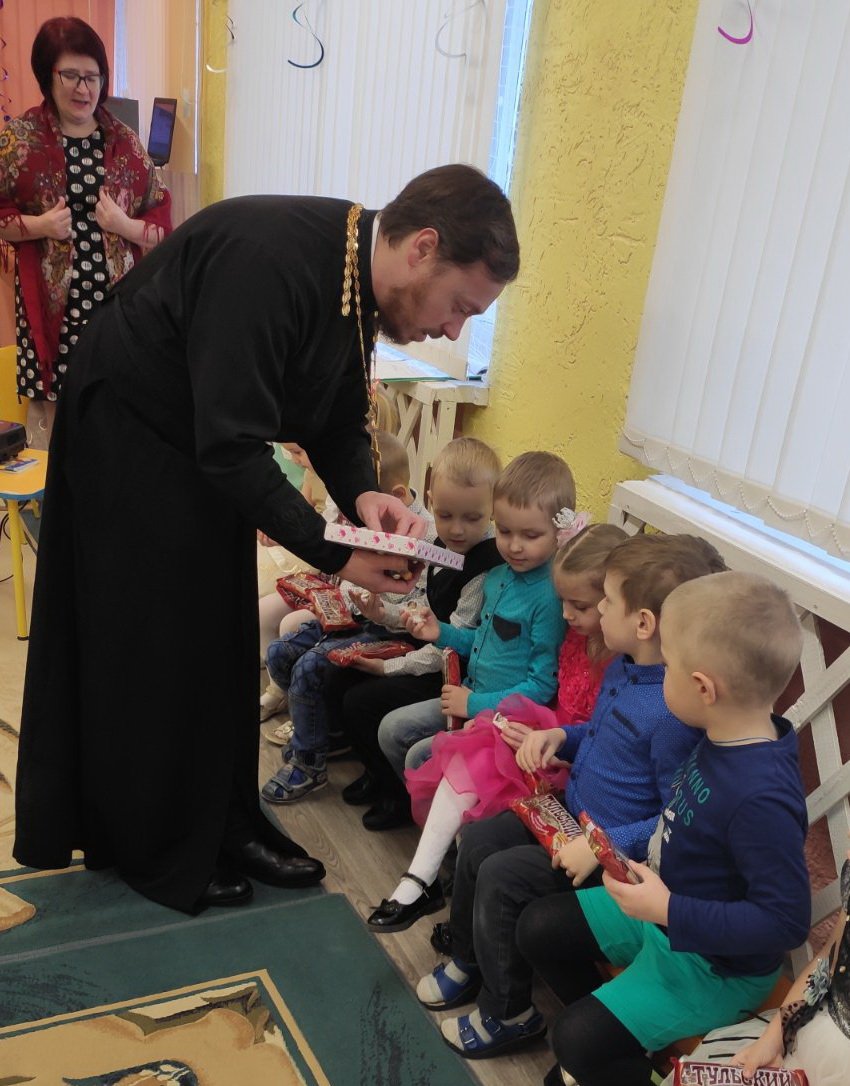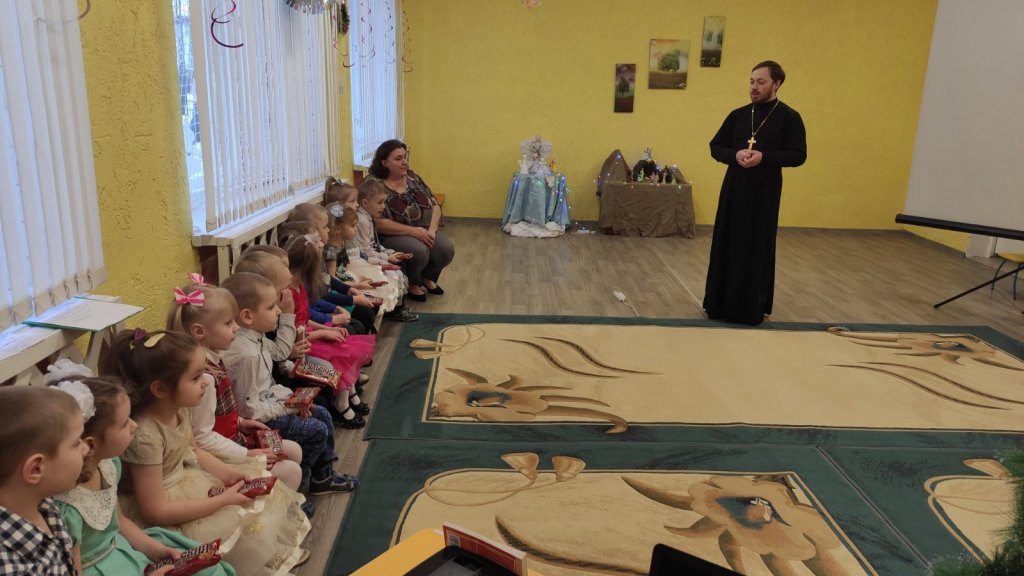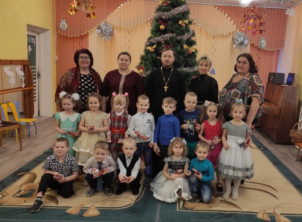 Чей день рождения мы празднуем в Рождество? Многие об этом забыли, а воспитанники младшей группы яслей-сада №11 хорошо знают. Вместе с Рождественской звездой они сумели объяснить несмышлёным зверятам, что в полную чудес ночь Рождества на земле родился Сын Божий Иисус Христос. Это самое большое чудо и самый большой подарок нам, людям. Дети тоже приготовили Господу подарки: пели, рассказывали стихотворения, танцевали и прославляли родившегося Богомладенца со всей искренностью чистых сердечек. Почётным гостем на празднике стал клирик прихода храма святого благоверного князя Александра Невского в г.Рогачёве диакон Никита Кулиткин. Поблагодарив за замечательное представление юных артистов и воспитателей Феоктистову Наталью Сергеевну, Володичеву Анну Владимировну и музыкального руководителя Бычкунову Наталью Юрьевну, священнослужитель поздравил всех с Рождеством Христовым и вручил ребятам подарки.
