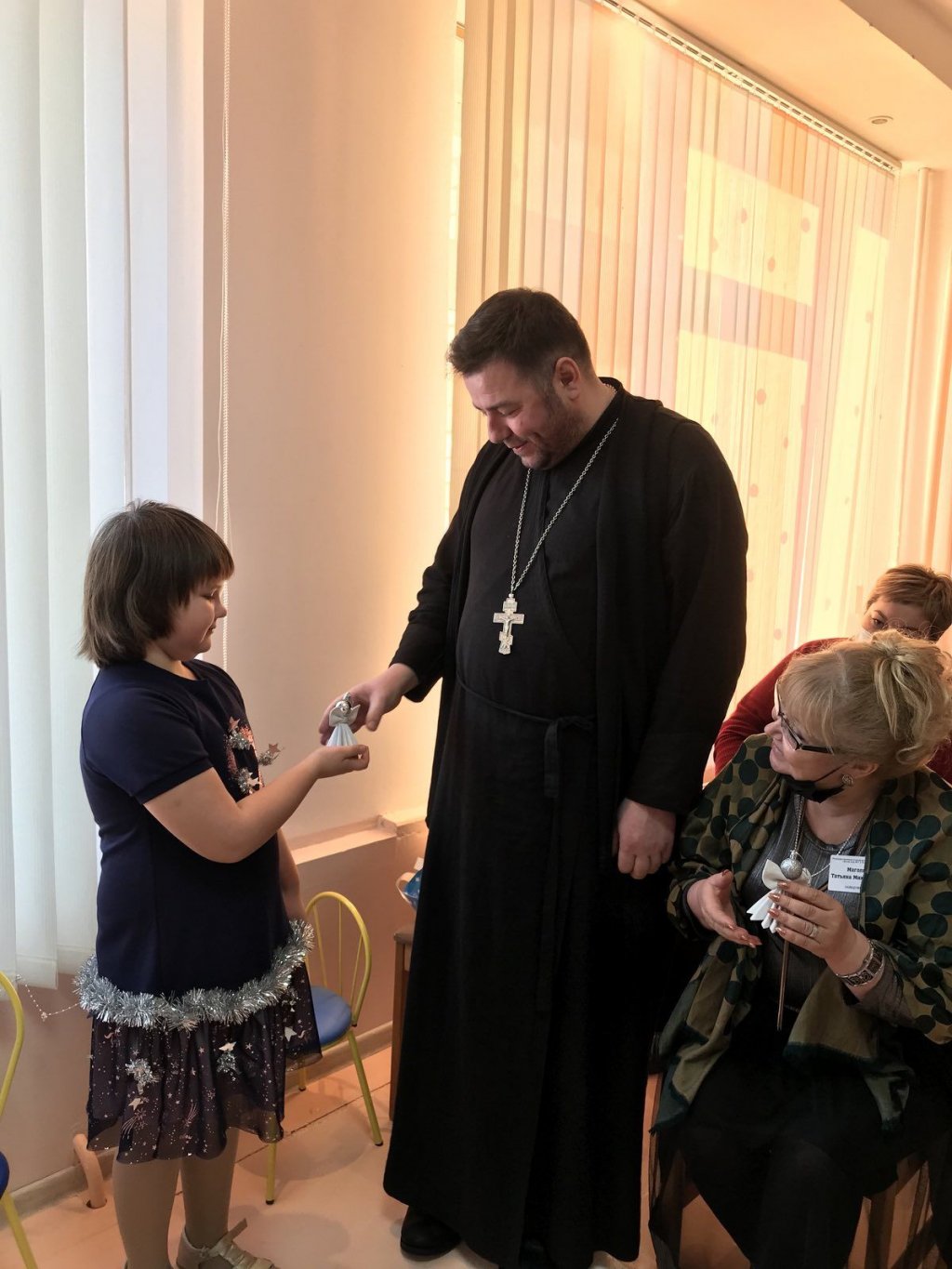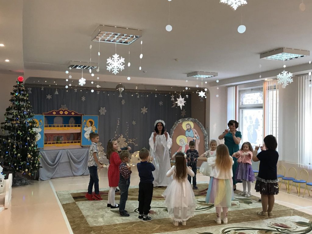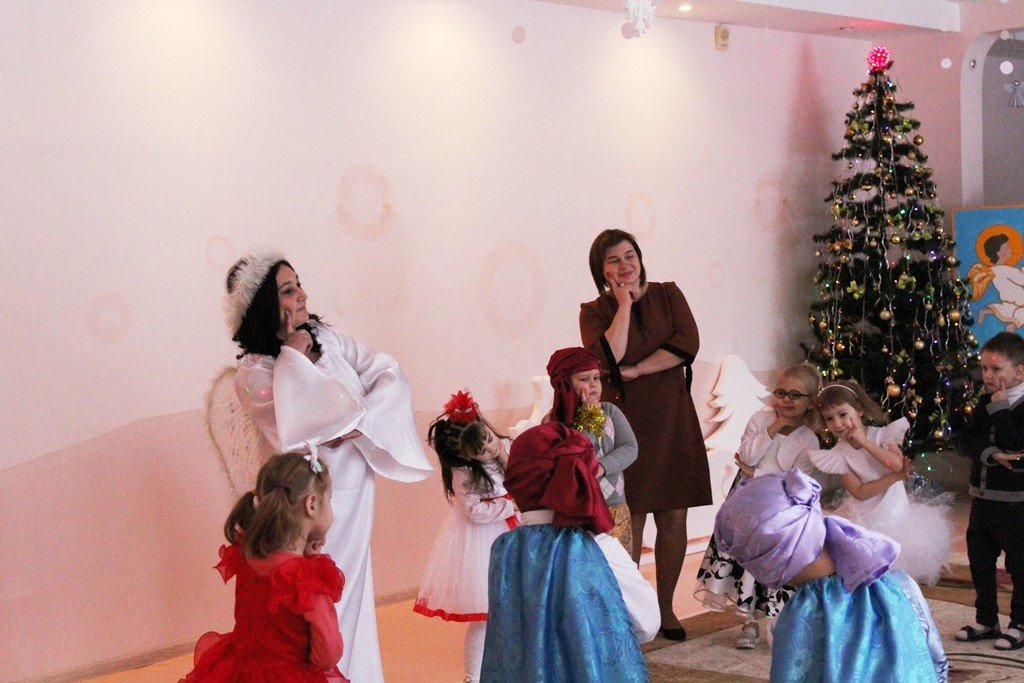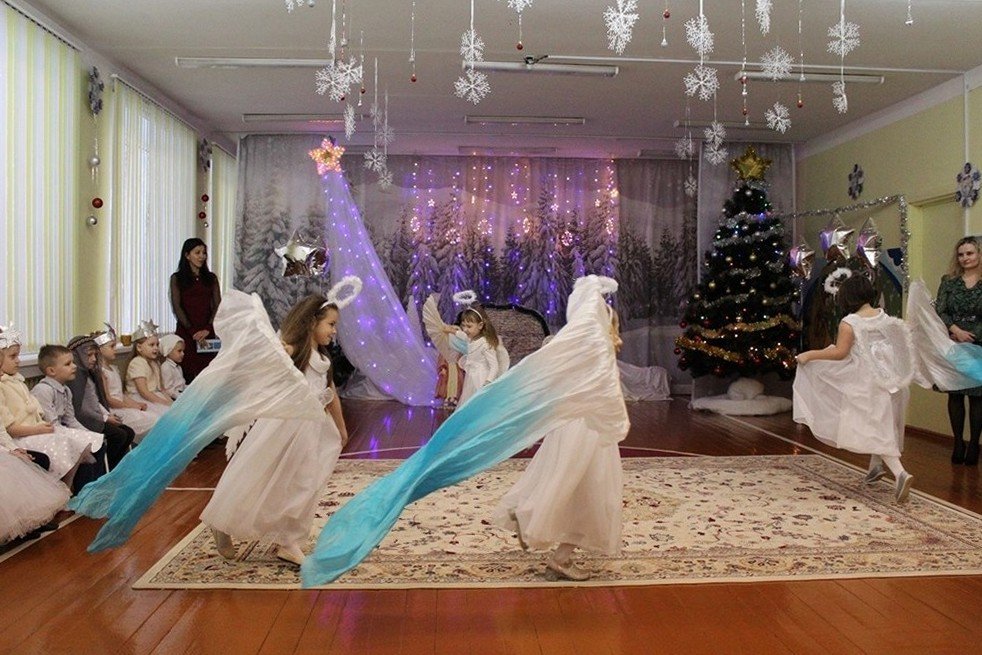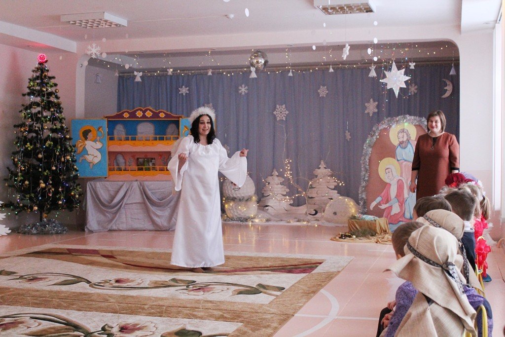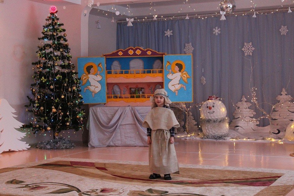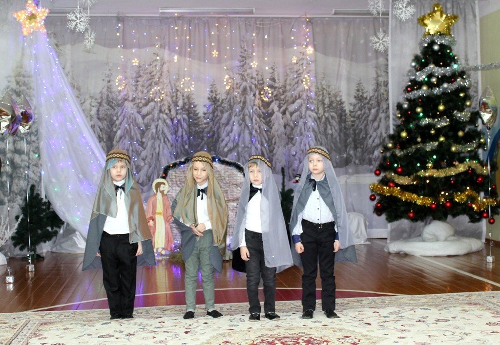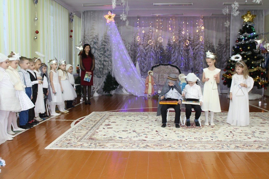 Праздничное представление «Дарит мгновения волшебства светлый праздник Рождества» в санаторном яслях-саду №4 г.Рогачева 11 ноября посетил настоятель прихода храма Святого Духа аг.Дворец протоиерей Владимир Янчесов. Трогательную рождественскую историю подготовили воспитанники старшей группы. Чарующий звон колокольчиков и рукотворная красота экспонатов выставки семейного творчества уже с порога манили в удивительный мир рождественского леса. В театрализованной миниатюре представили ребята вниманию зрителей святочную историю. Славили пришествие в мир Спасителя вода и звёзды, пастухи и овечки. Дети дарили родившемуся Богомладенцу стихи и песни, играли Ему на музыкальных инструментах. Протоиерей Владимир Янчесов не только поздравил всех с Рождеством Христовым, но и проверил знания ребят об истории рождения Господа нашего Иисуса Христа в мини-викторине. Вручив подарки детям, священник передал саду свою картину с изображением храма Святого Духа и пригласил всех почаще бывать в церкви. Благодаря стараниям воспитанников и педагогов Ковырзиной Екатерины Александровны, Скорых Регины Ермековны, а также музыкального руководителя Волчковой Аллы Викторовны праздник подарил зрителям рождественскую радость.