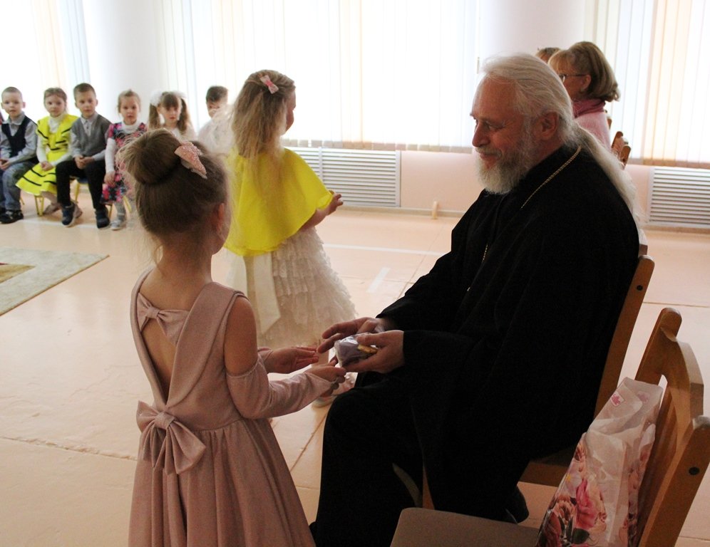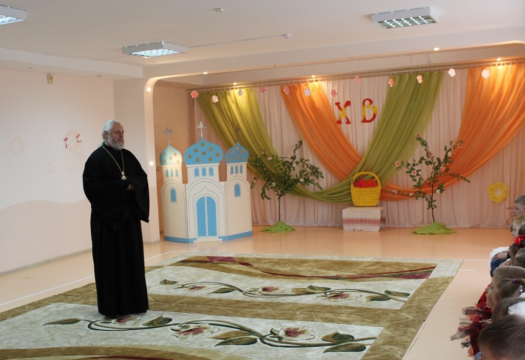 Праздничное представление «Пасхальный колобок» в старшей группе яслей-сада №7 посетил 13 мая благочинный Рогачёвского округа протоиерей Алексей Смотрицкий. Ребята из группы воспитания на православных традициях белорусского народа славили Воскресшего Христа в пасхальных песнях, стихотворениях и театрализованных миниатюрах. С детской искренностью юные артисты сумели передать, как радуются Пасхе Господней насекомые и животные, даже медузы пляшут в глубине морской. Протоиерей Алексей Смотрицкий поздравил всех с праздником Светлого Христова Воскресения, поблагодарил за замечательное представление детей, воспитателя Баранчук Марину Ивановну и музыкального руководителя Ивантатову Елену Викторовну. Священник просто и доступно рассказал ребятам о смысле и значении Пасхи и вручил сладкие подарки.