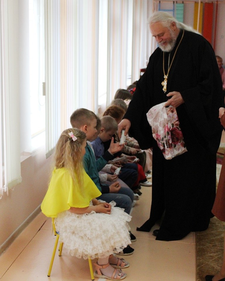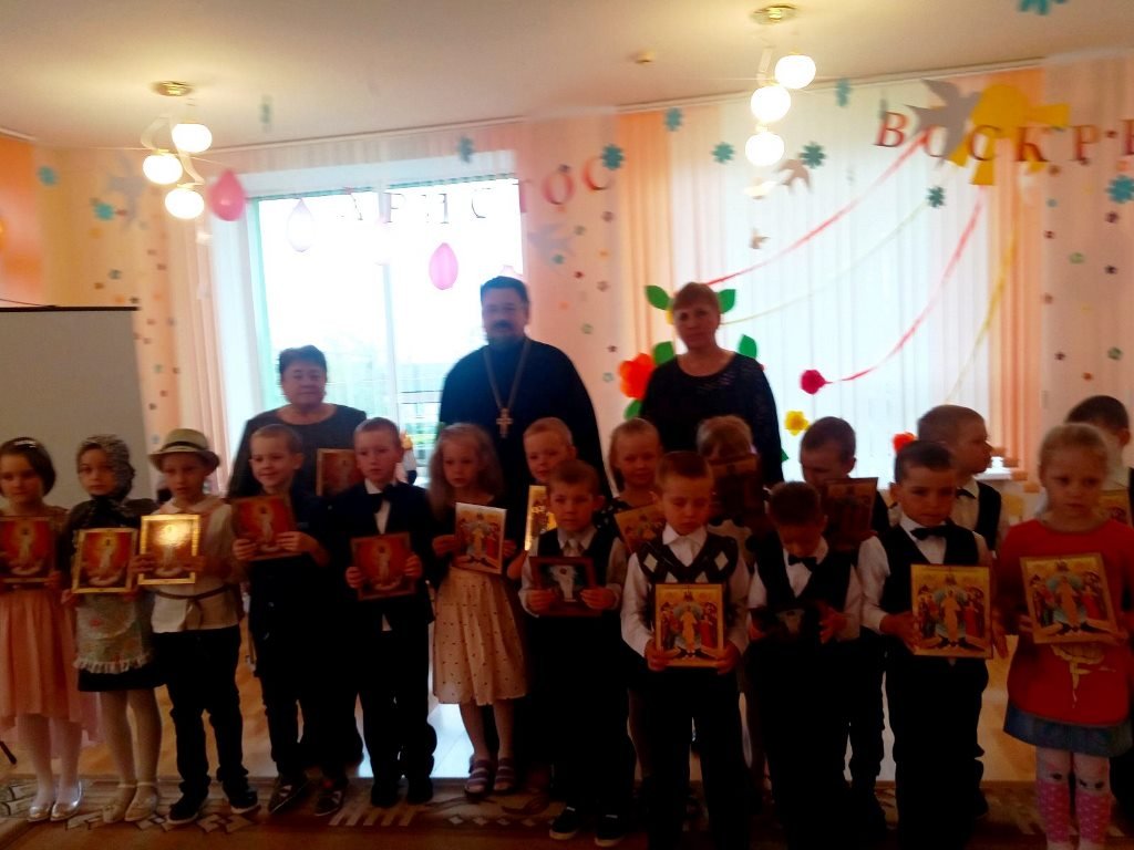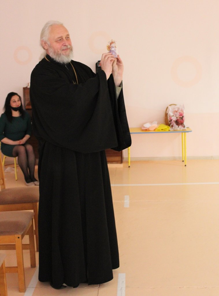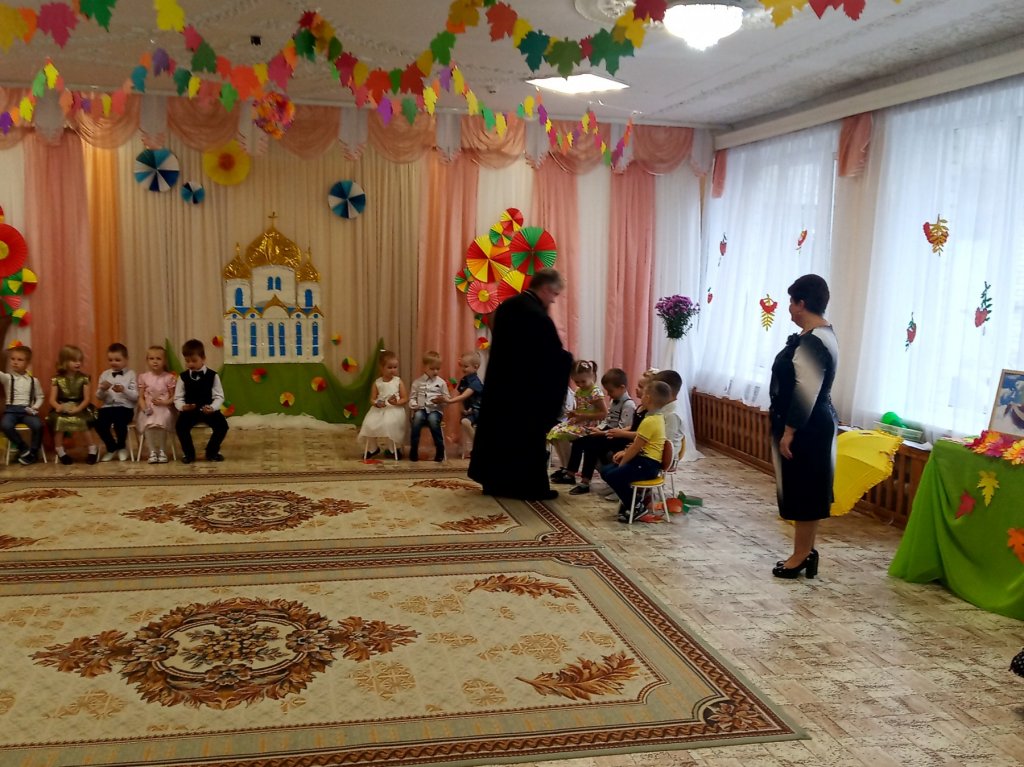 14 октября, в праздник Покрова Пресвятой Богородицы, протоиерей Георгий Мартышевский, клирик прихода храма святого благоверного князя Александра Невского в г.Рогачёве, поздравил с этим торжеством и Днём матери педагогический коллектив яслей-сада №13 г.Рогачёва и воспитанников старшей группы, в которой особое внимание уделяется православным традициям белорусского народа. В рамках этой деятельности ребята с помощью воспитателя Самусевой Елены Васильевны и музыкального руководителя Башкиной Татьяны Николаевны подготовили представление к празднику Покрова Пресвятой Богородицы. В стихотворениях, песнях и танцах прославляли они Пречистую Деву. Протоиерей Георгий Мартышевский рассазал ребятам об истории праздника, о заступничестве Божией Матери и посоветовал детям всегда слушаться, любить, ценить и уважать своих мам. Священник поблагодарил ребят и педагогов за праздник и вручил иконки и сладкие подарки.