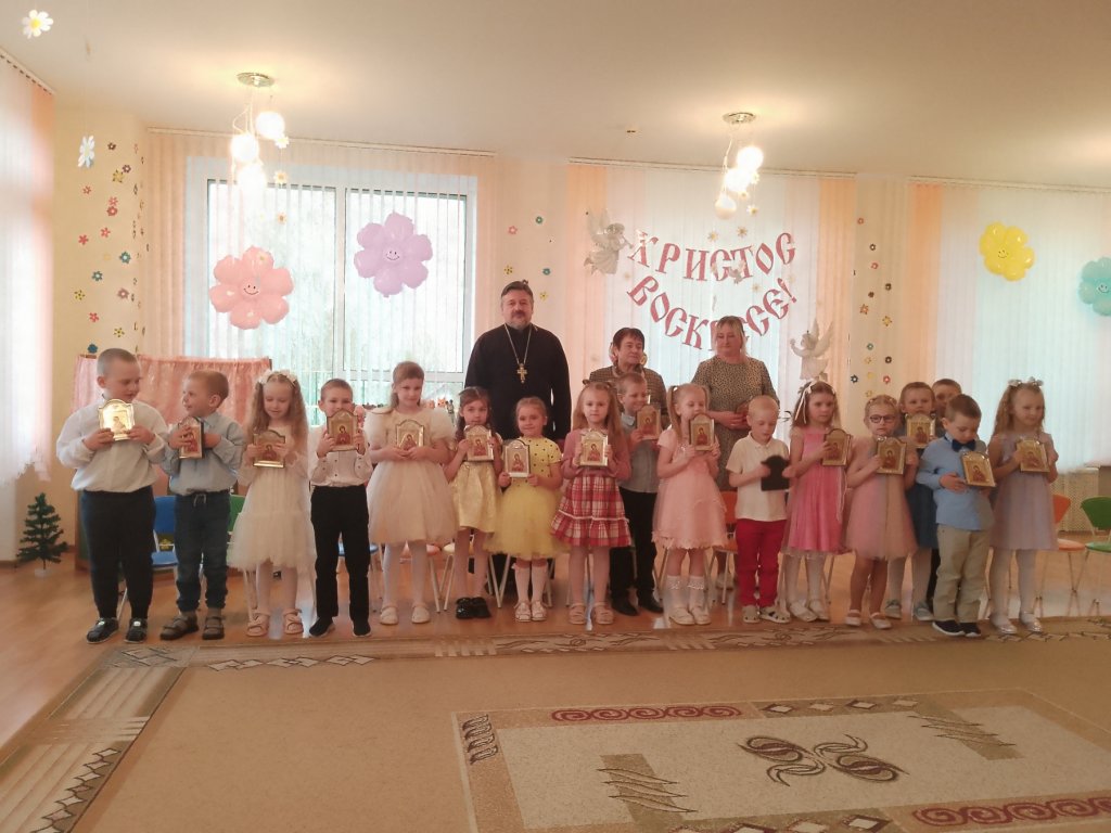 Протоиерей Николай Степанов, настоятель прихода храма Святого Архангела Михаила в аг. Тихиничи, разделил со всеми радость Светлой Пасхи, поблагодарил ребят, воспитателей и организаторов праздника и подарил каждому участнику икону Божией Матери.